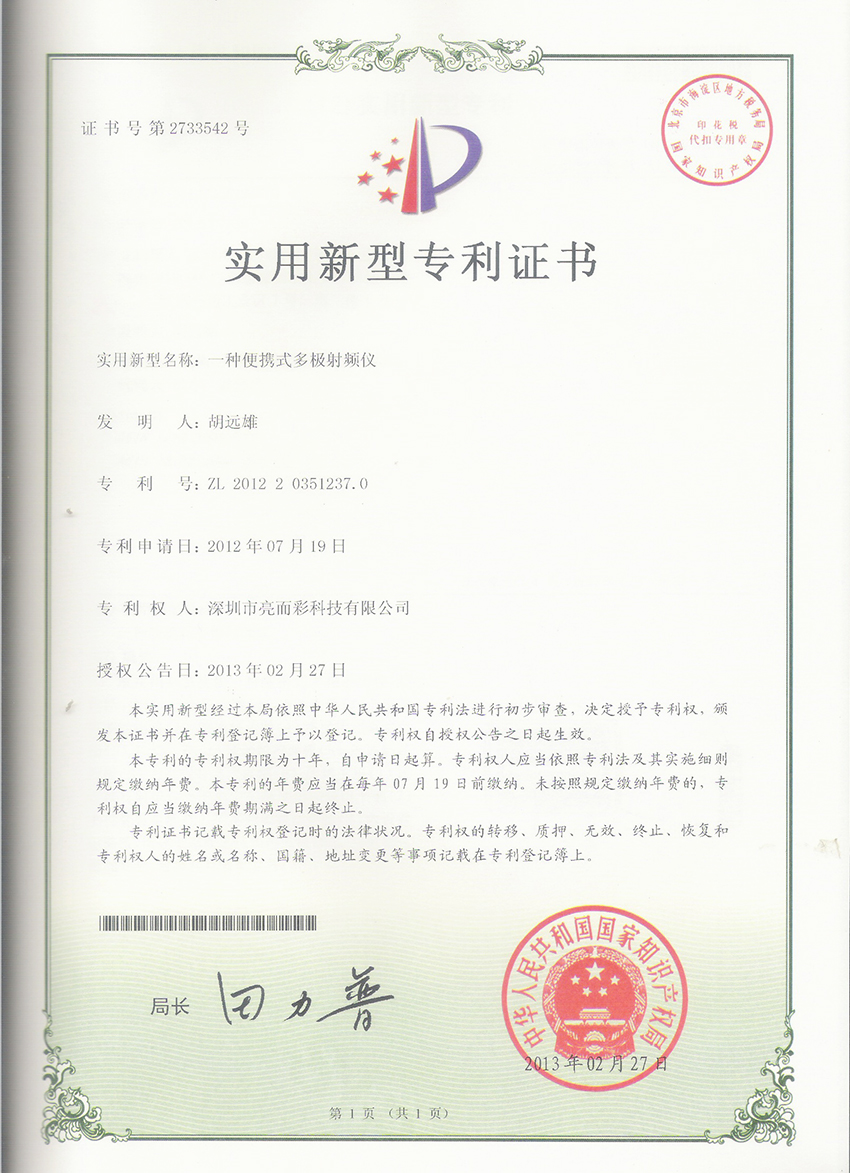 亮而彩美容儀器 > 榮譽資質