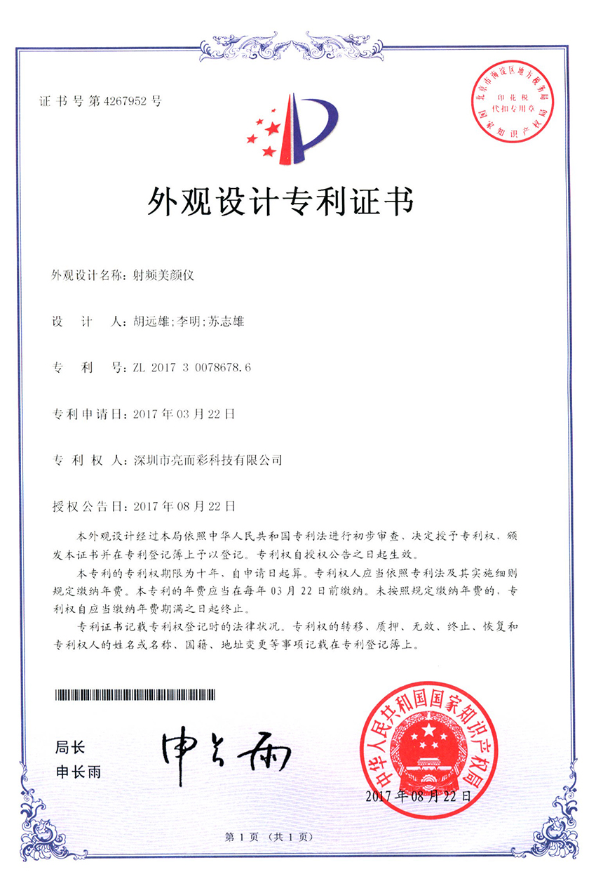 亮而彩美容儀器 > 榮譽資質