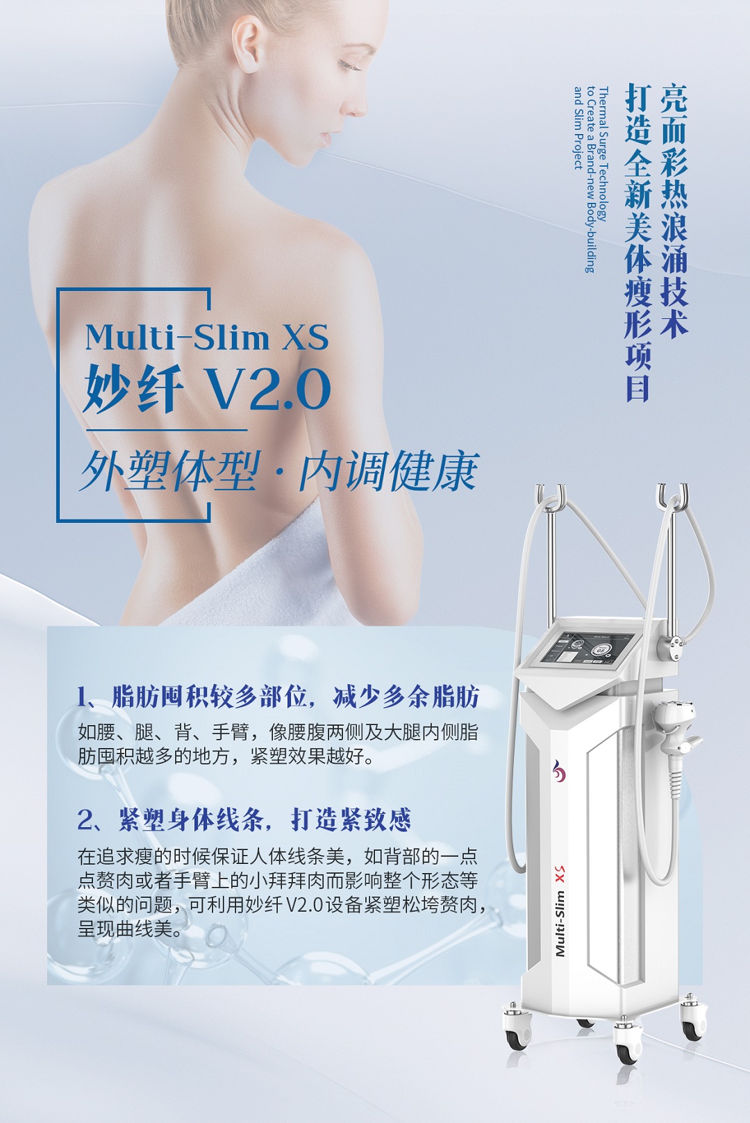 而像妙纖大師、妙纖V2.0這樣的熱浪涌纖體儀器,在體驗效果上能幫助人們進行形體精雕,打造健康體態。一方面深入皮膚底層,促使膠原蛋白產生,緊實皮膚,減少脂肪,緊塑體形;另一層面,加速身體微循環,清排雜質,提升代謝,打造健康體態。