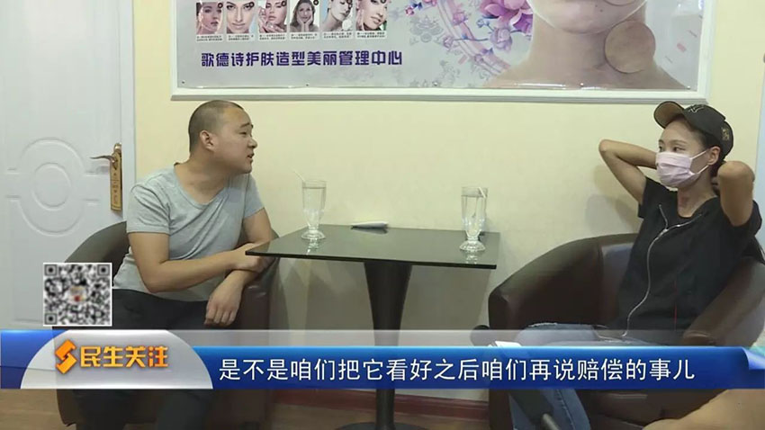 工作人員:我們需要做到麻煩什么啊?我也非常理解你,身為一個小姑娘誰不愛美啊,是不是咱們把它看好之后,咱們再說賠償的事兒。