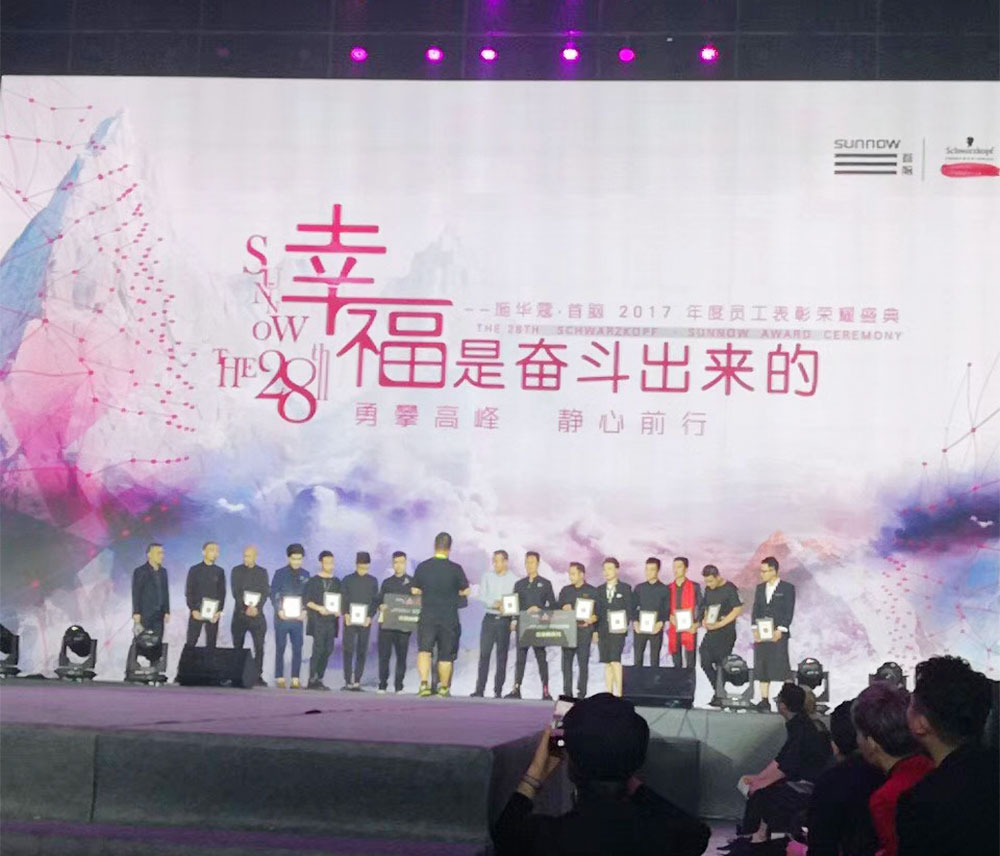 |  盛會臨近尾聲,主持今年活動的18位支持人登場,宣布“幸福是奮斗出來的”—首腦2017年度員工表彰盛 典大會完滿結束! |