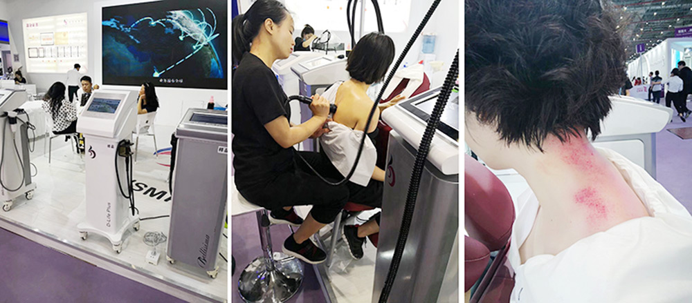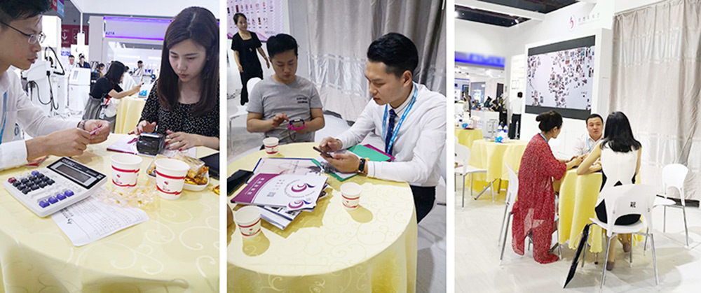 來亮而彩展位體驗美容儀器的人非常多,美容師中午飯都沒空吃了,一直在為客戶服務,為我們美容師和銷售們致敬~
