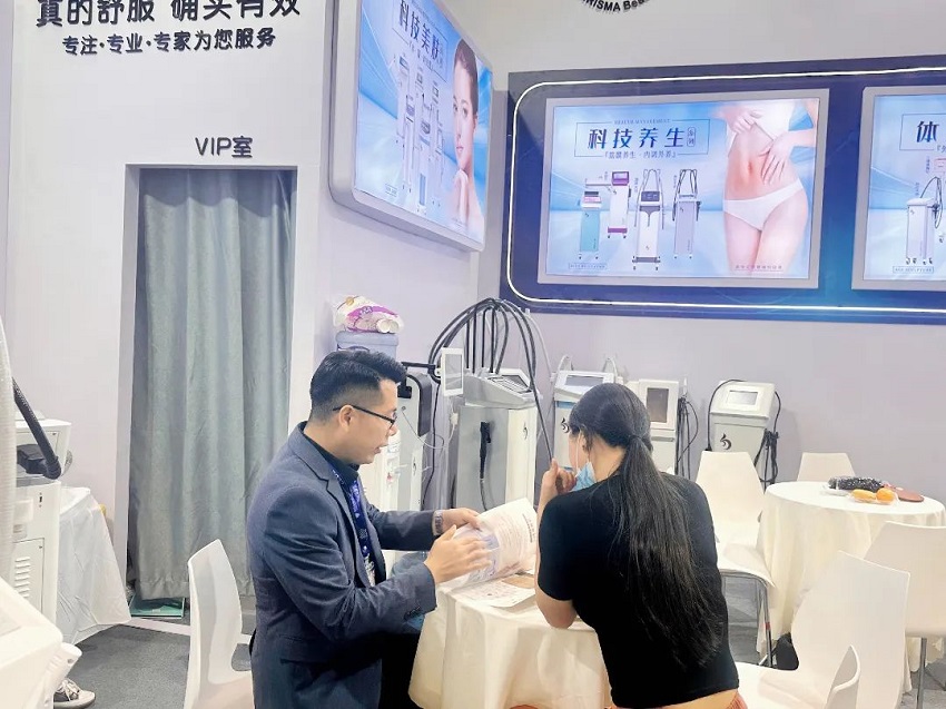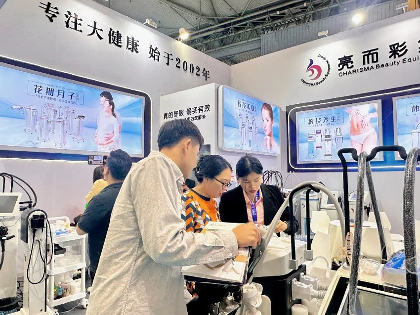 在展會期間,亮而彩的展位吸引了許多慕名而來的新客戶或是尋找新項目的老客戶,現場人流攢動。許多客戶對我們的產品表示了濃厚的興趣。 花期系列、科技養生、體齡雕塑和科技美膚等熱門系列成了話題中心。“科技改變生活”,足以說明科技力量已經能夠讓現代社會的生活更上一層樓。 亮而彩研發理念一直跟隨潮流發展,打造符合社會生活特點的儀器設備。讓您健康生活也能活的美麗。
