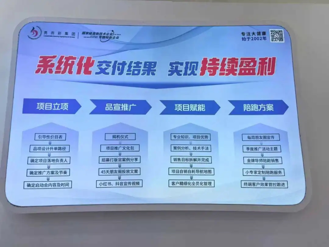 亮而彩始終秉持“系統(tǒng)化交付結(jié)果,實(shí)現(xiàn)持續(xù)盈利”“做更適合中國(guó)人體質(zhì)的儀器”“復(fù)制無(wú)憂,小白能手” 三大核心理念,深度融入項(xiàng)目與服務(wù),助力美業(yè)門店發(fā)展。