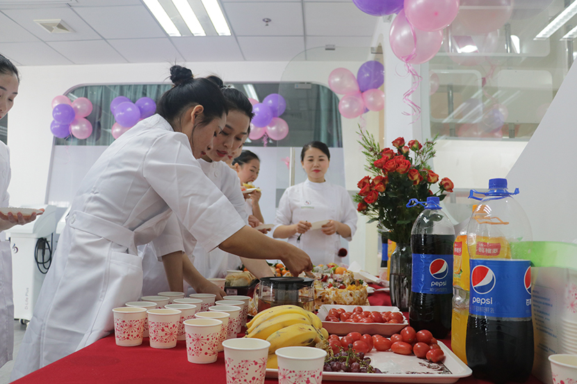 |  銷售部的小伙伴們帶來的舞蹈“江南style”更是給此次開業典禮帶來一眾歡聲笑語。 10時58分,亮而彩科技美容中心(財富港店)也在一片歡騰氣氛中揭牌剪彩! |
