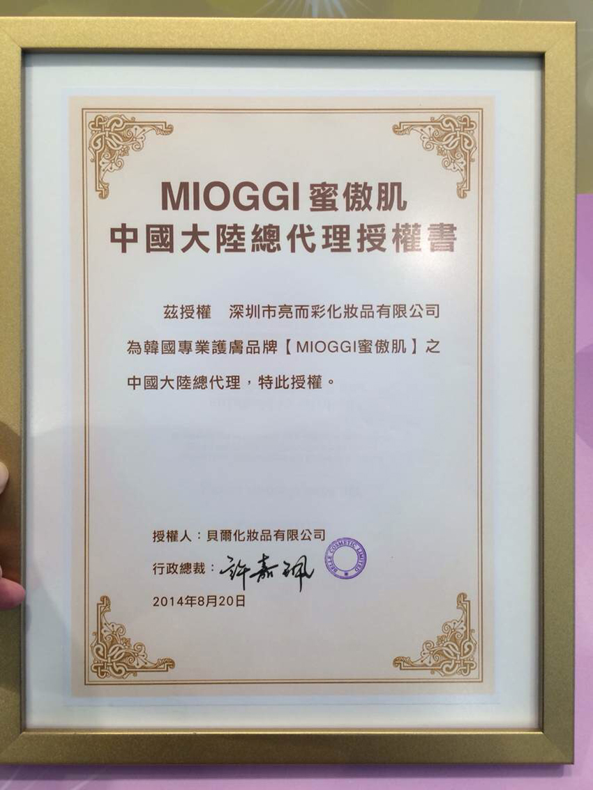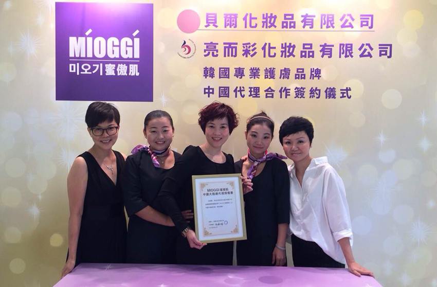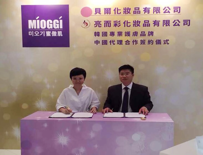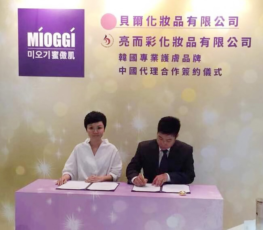 | 在八月二十號這天,亮而彩與香港貝爾簽訂戰略合作伙伴協議,亮而彩成為韓國進口的Mioggi(蜜傲肌)系列產品的中國大陸區域代理。  |