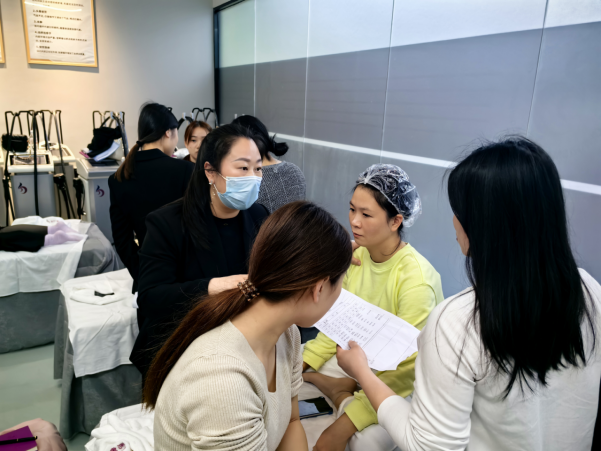 實操環(huán)節(jié)同樣精彩,學(xué)員們在模擬真實的美容服務(wù)場景中進(jìn)行練習(xí)。晚場的 “找需求練習(xí)” 更是將理論與實踐緊密結(jié)合,學(xué)員們運用所學(xué)溝通技巧,與模擬顧客深入交流,不斷提升挖掘顧客深層需求的能力