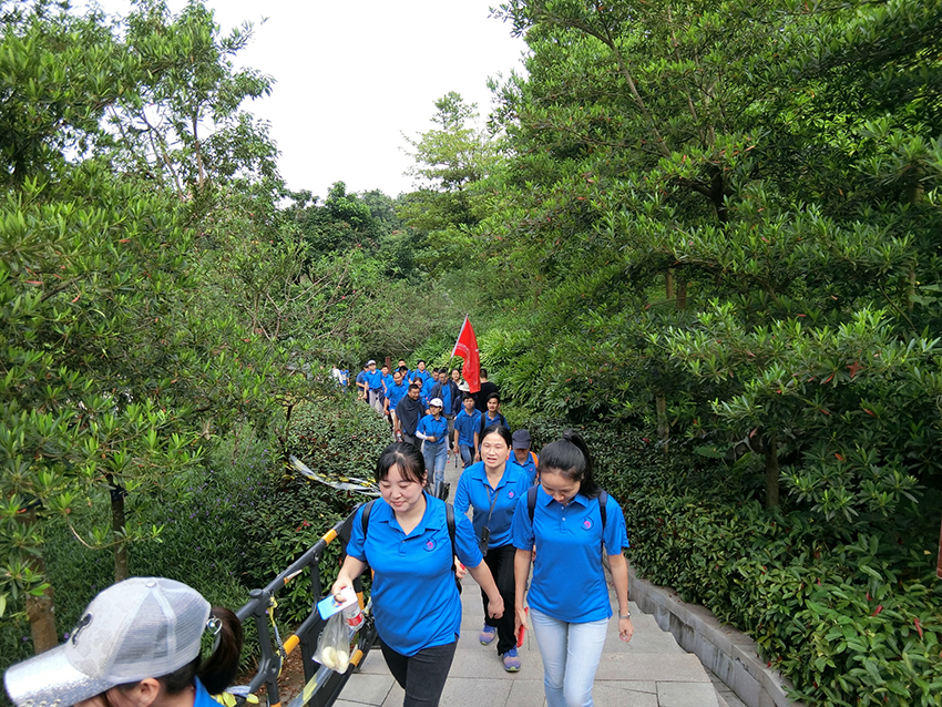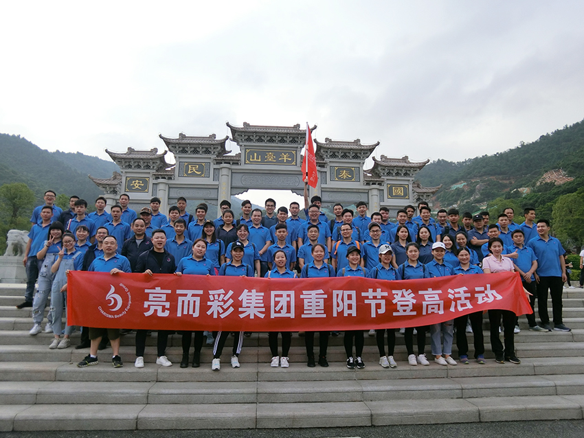|  活動當天,隨著李明副總經理的一聲令下,身穿統一服裝的員工們一致地向羊臺山谷進發。亮而彩團隊在胡遠雄董事長的帶領下,意氣風發,勇攀高峰,用綠色環保的方式去紀念重陽節的先人們。亮而彩團隊用自己的方式倡導“全民健身,健康生活”,也希望更多的人能一起參與。 |