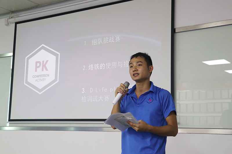 |  競賽內容主要通過比生產速度、比安效生產、比儀器質量、比現場管理,生產質優儀器。接下來由趙主管宣布競賽規則后就開始我們的比賽吧。 |