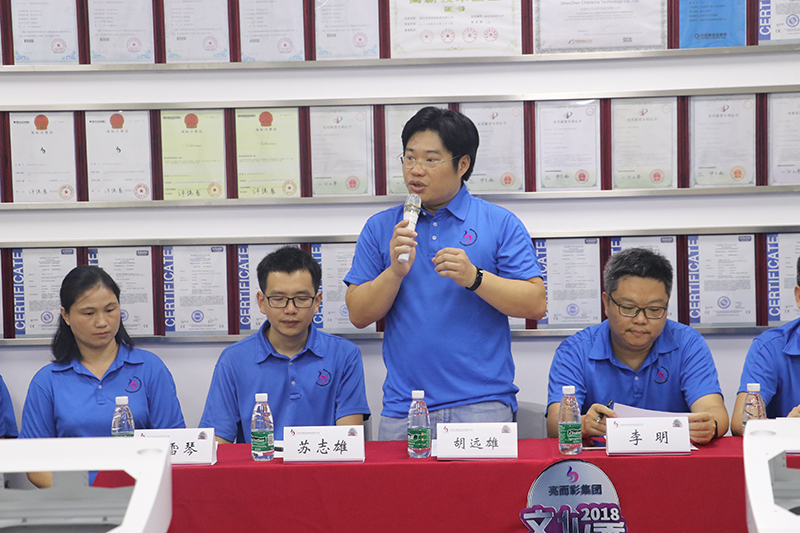 |  亮而彩首屆技能競賽大賽在亮而彩科技有限公司會議室舉辦,旨在帶動員工適應新時代、新要求,團結動員,員工主動進取投身經濟建設主戰場,努力建設知識型、技術型、創新型復合型人才。 競賽開始前,亮而彩集團董事長胡遠雄先生及亮而彩科技有限公司副總經理李明先生、總工程師蘇志雄先生進行致辭。 |