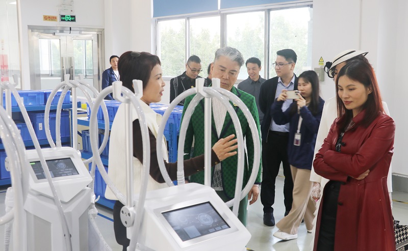 在當(dāng)天,在深圳市美協(xié)協(xié)會常務(wù)副會長之一、集團(tuán)董事長胡遠(yuǎn)雄先生的陪同下,一行領(lǐng)導(dǎo)先后參觀亮而彩實業(yè)集團(tuán)所涉研發(fā)生產(chǎn)技術(shù),了解集團(tuán)相關(guān)項目運營及市場服務(wù)戰(zhàn)略工作。唐會長更是指出亮而彩集團(tuán)做技術(shù)、做專業(yè)、做創(chuàng)新,對質(zhì)量的嚴(yán)格把控,對創(chuàng)新技術(shù)不竭的專注是亮而彩集團(tuán)不斷為美業(yè)發(fā)展貢獻(xiàn)力量的關(guān)鍵。