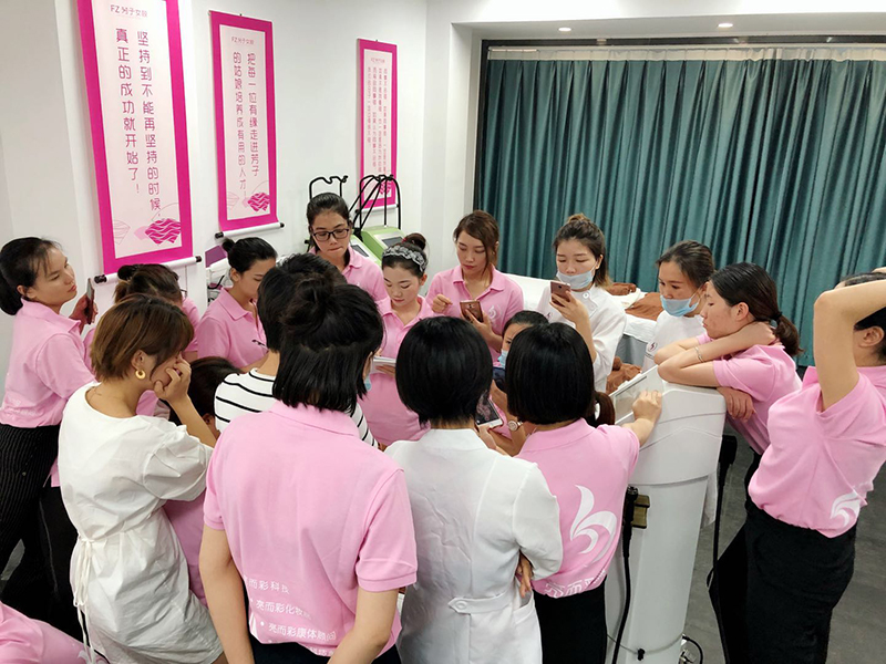 | 內訓第二天,在我們亮而彩女子學校進行,大家依然是元氣滿滿的噢,把踴躍的態度帶到工作氛圍里,在分享中一起成長。  各導師分別演示美容儀器教學,在教學中可以用更好方式、方法,完善教學質量。 提出培訓期間容易出現的問提及解決方法,講解過程中,每位導師教學中可取之處和不足之處,優點提出來大家學習,缺點有則改之無則加勉。導師們分成兩組,各派一位組員出來,另一組提問題。 |