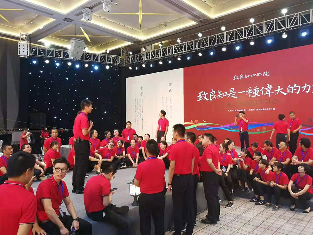 | 8月的深圳,26日,臺(tái)風(fēng)過境,惠風(fēng)和暢;27日,臺(tái)風(fēng)再臨,風(fēng)暴肆虐。就在這一動(dòng)一靜的兩天里,致良知深圳地區(qū)學(xué)習(xí)會(huì)如期舉辦,亮而彩集團(tuán)胡遠(yuǎn)雄董事長(zhǎng)帶領(lǐng)優(yōu)秀員工參加此次學(xué)習(xí)會(huì),近800名企業(yè)家內(nèi)心篤定、精神飽滿地相聚一堂,共學(xué)陽(yáng)明心學(xué),領(lǐng)會(huì)圣賢智慧。  自今年4月“致28”深圳蛇口學(xué)習(xí)會(huì)以來,越來越多的企業(yè)家及員工、家人感受到了知行合一、以生命喚醒生命的力量。本次學(xué)習(xí)會(huì)上,正和島創(chuàng)始人劉東華、金蝶集團(tuán)董事局主席徐少春、深圳諾普信農(nóng)化股份有限公司董事長(zhǎng)盧柏強(qiáng)、中快餐飲集團(tuán)創(chuàng)始人李四星、深圳市航盛股份有限公司總裁楊洪、深圳燃?xì)饧瘓F(tuán)董事長(zhǎng)李真、深圳長(zhǎng)城物業(yè)董事長(zhǎng)陳耀忠、TCL總裁薄連明、奮達(dá)集團(tuán)董事長(zhǎng)肖奮等“致28”企業(yè)家登臺(tái)分享了致良知“百日向東”學(xué)習(xí)心得。 |