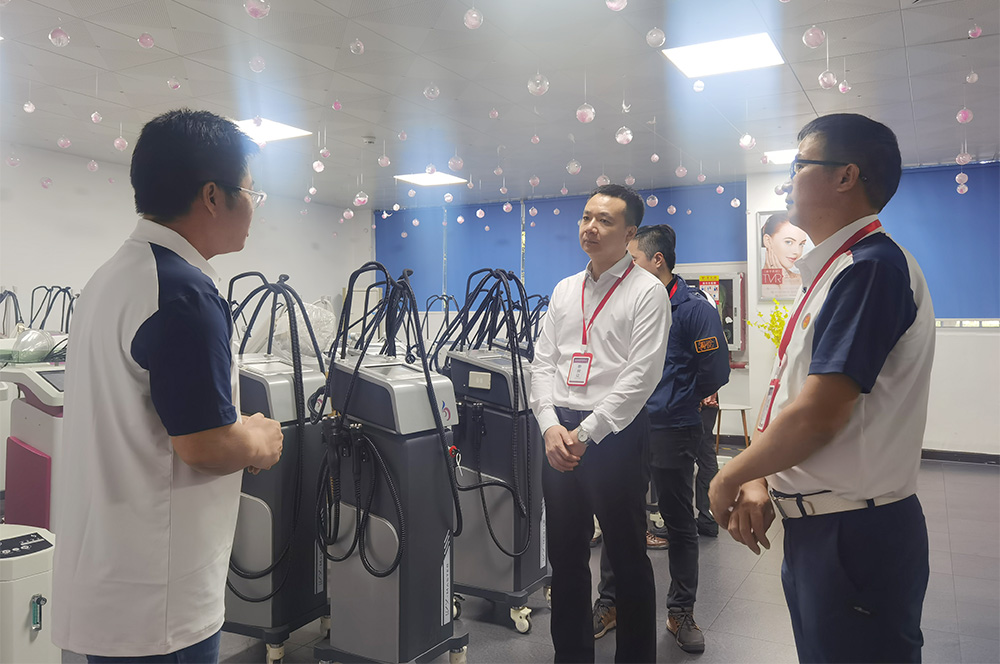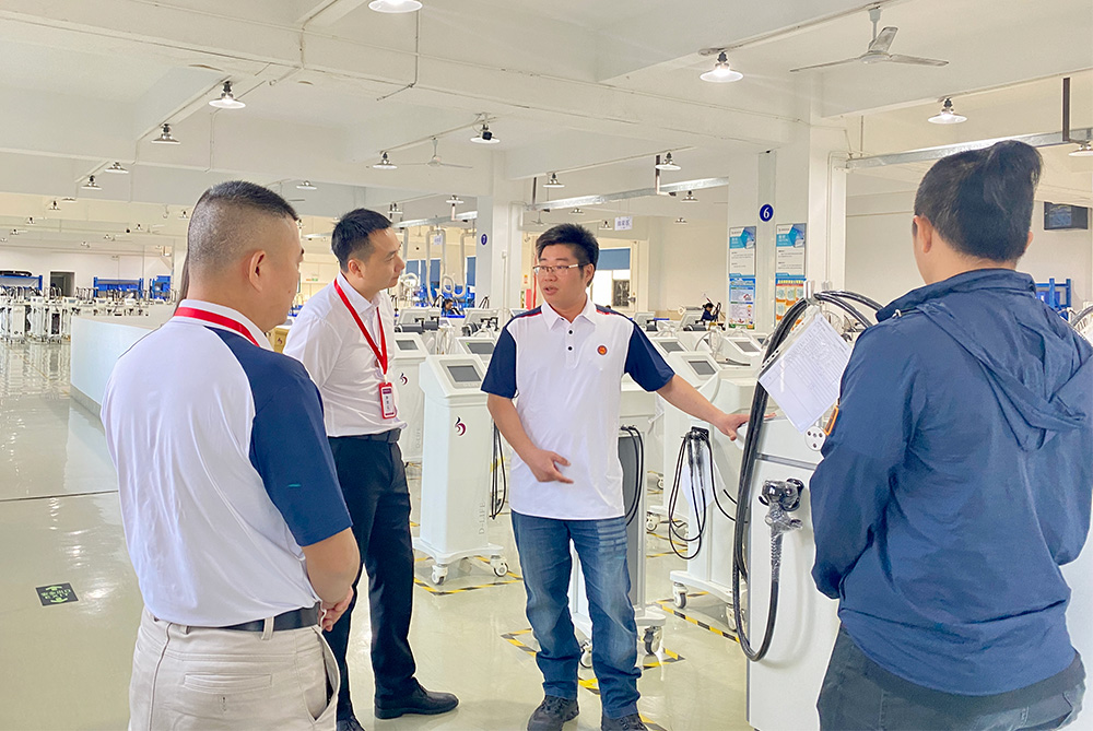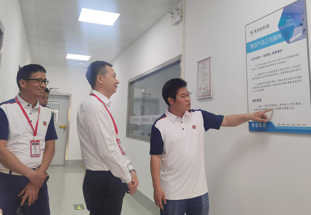 在當(dāng)天,一行領(lǐng)導(dǎo)們?cè)诹炼始瘓F(tuán)董事長(zhǎng)胡遠(yuǎn)雄先生的陪同下,先后對(duì)亮而彩集團(tuán)的生產(chǎn)研發(fā)、銷(xiāo)售服務(wù)、健康管理中心等各環(huán)節(jié)進(jìn)行詳細(xì)考察。